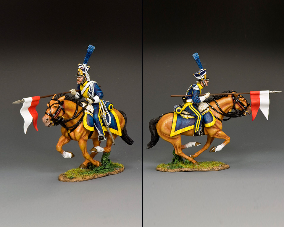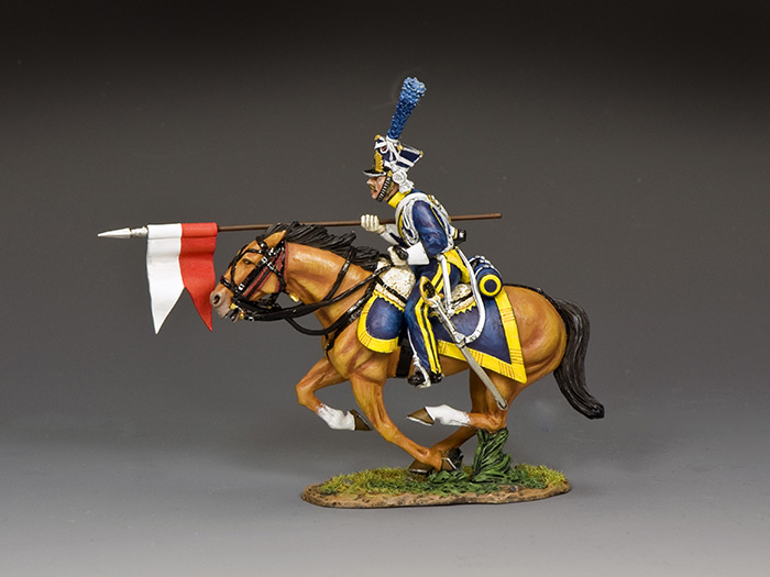 With his lance couched forward under his arm this 'Vistula' spurs his mount into a charging gallop.