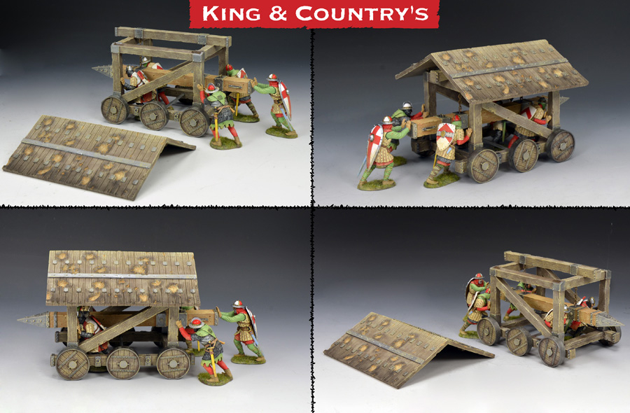 Our latest 'Siege Machine' features a large 6-wheel machine with a detachable wooden roof from which is suspended (from chains) a heavy wooden ram with a strong, sturdy, steel head.
