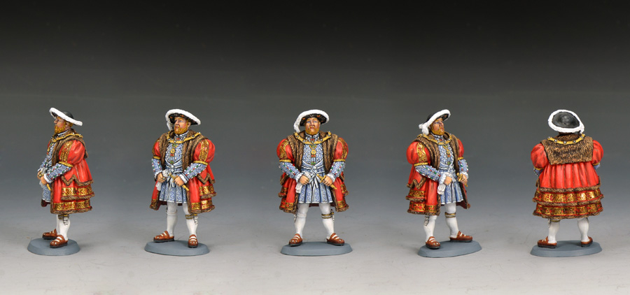 This figure is based on several portraits of the King painted in the prime of his life by the painter Hans Holbein, a contemporary of the monarch.