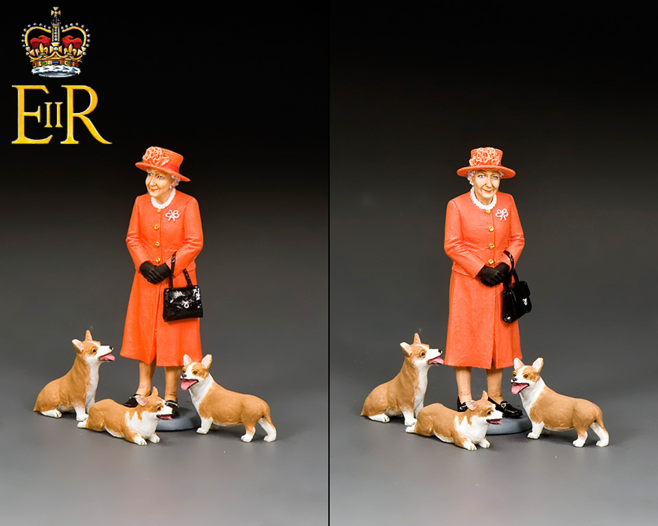 The final colour combination here shows the late monarch in a saturated, bold orange ensemble.